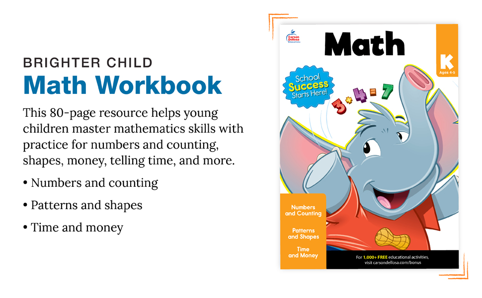Carson Dellosa Math Workbook―Basic Concepts for Kindergarten Math, Numbers, Counting, Patterns, Shapes, Time, Money, Classroom or Homeschool ...